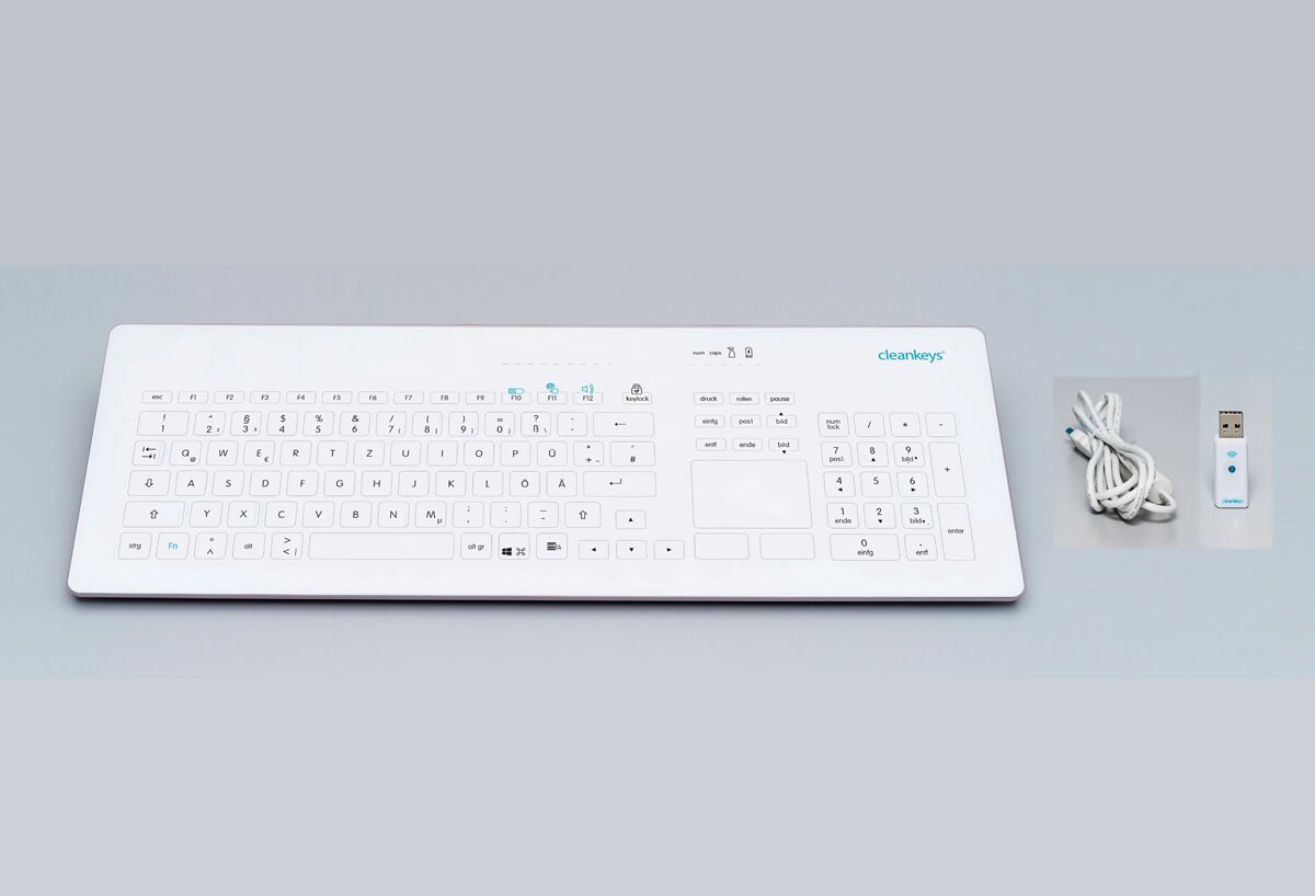 Cleankeys® stands for designer keyboards with a touch surface made of glass. They are therefore the perfect solution for discerning users, who place importance on design, cleanliness and a high degree of usefulness. Our CK4W is particularly suitable for hygiene sensitive areas like hospitals, doctor’s offices and labs.