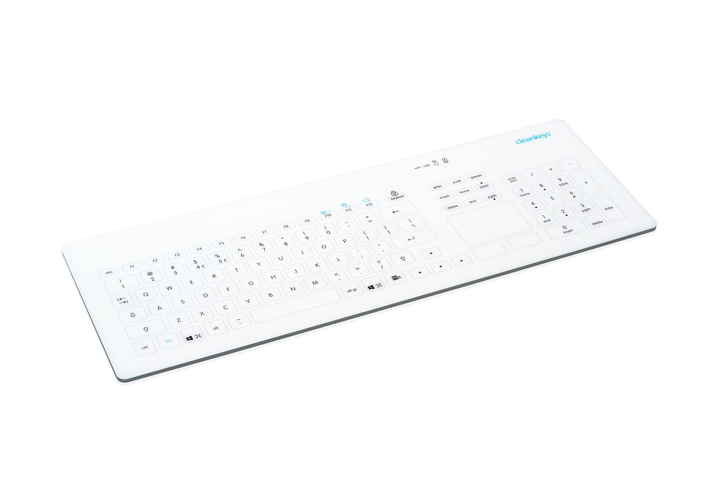 CLEANKEYS® CK4W - Wireless, capacitive glass keyboard with touchpad and number pad