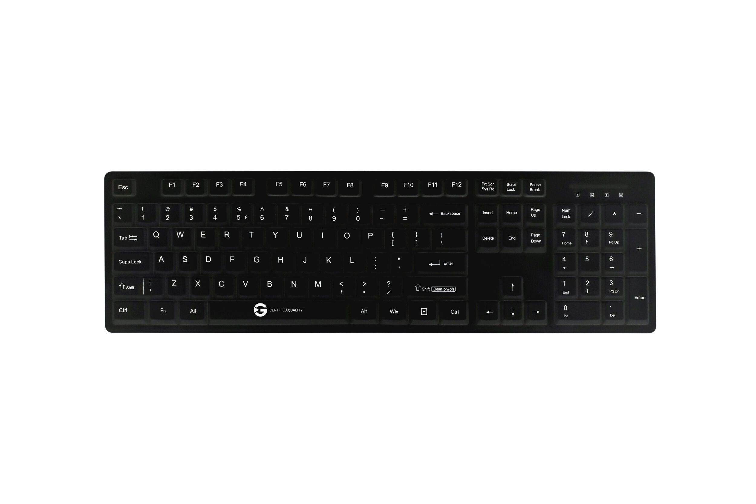 The CleanType® Easy Protect is a high-quality silicone keyboard that is easy to clean thanks to its water and dust resistance, making it ideal for use in hygiene-sensitive areas such as hospitals, clinics, medical practices, laboratories or pharmaceutical companies. You can individualize your CleanType® Easy Protect in line with your wishes by having your own company logo printed on it and therefore integrating it perfectly into your current corporate identity. In addition we can equip this keyboard with any existing country layout. We are able to do this even if you only require a small number of items.