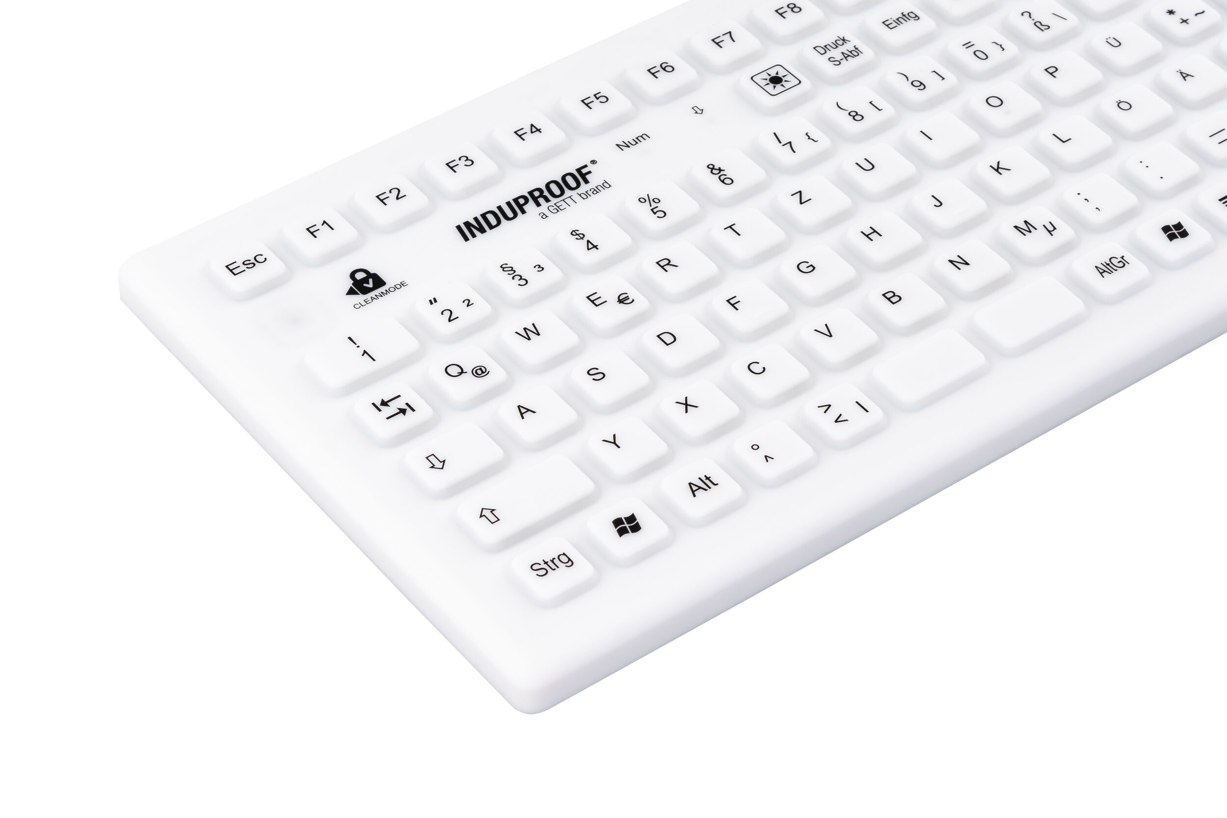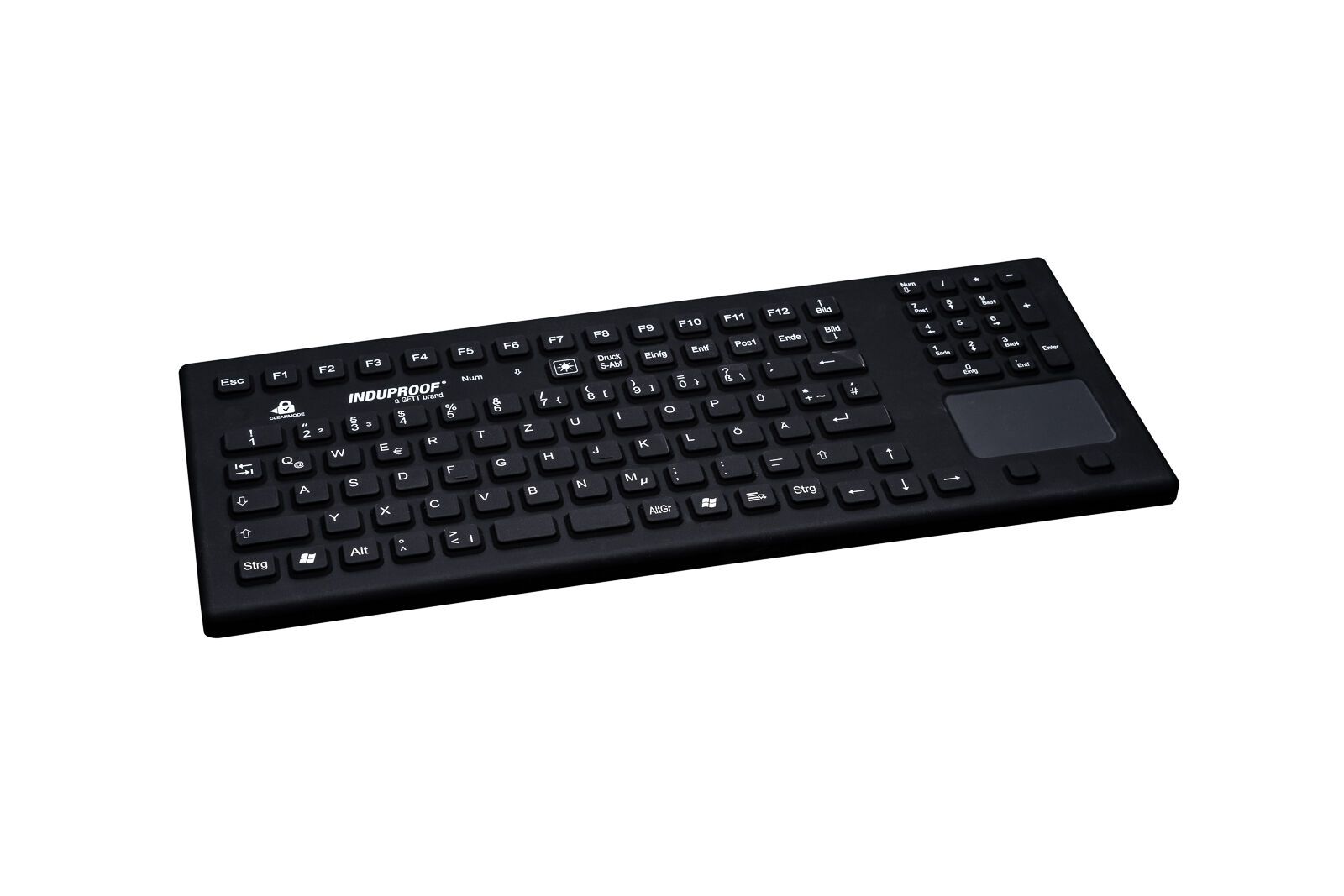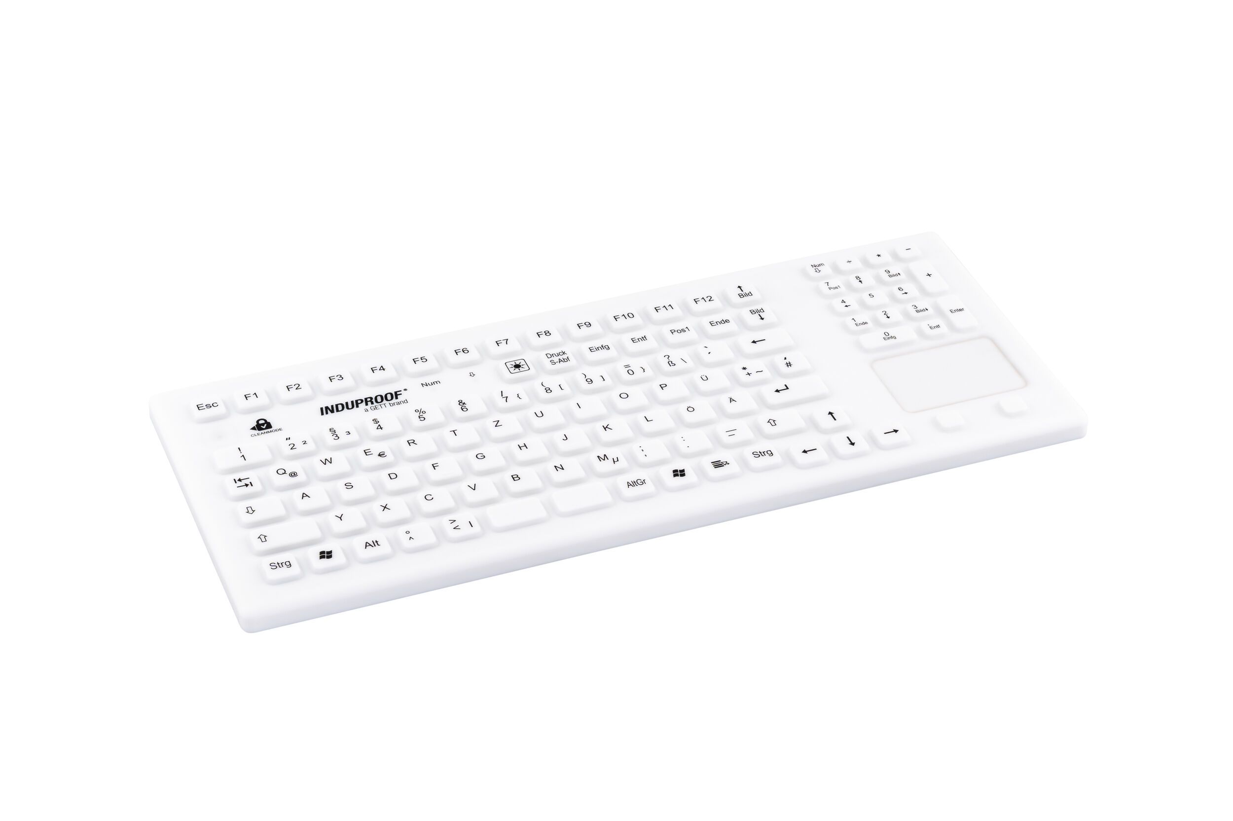 This InduProof® keyboard has a complete set of keys with numeric keypad, an integrated touchpad and convinces with a pleasant tactile feel and the highest degree of protection. This makes the keyboard suitable for use in almost all hygiene-sensitive areas. It can be cleaned and disinfected all around. Thanks to the high-quality "Made in Germany" finish, it has a long service life. As part of the InduProof® brand family, it is manufactured in line with the highest quality standards. Customisation is also possible, even if you only require a small number of items.